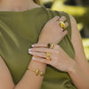 The Waves Stride Ring combines sophistication and organic design in a maxi piece that elegantly hugs two fingers. Crafted from gold-tone surgical steel, it offers a smooth texture that adapts to the natural curves of your skin. Hypoallergenic and water-resistant, it guarantees comfort and durability for everyday wear. Versatile and versatile, it's the perfect statement piece for those seeking quality and refined style in every detail.